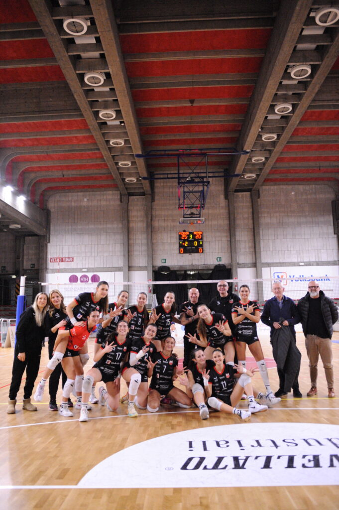 La Volksbank Vicenza Volley si regala un dolce Natale con il 3-0 casalingo di ieri in B1 femminile contro il Brembo Volley Team, con le beriche che festeggiano il secondo successo consecutivo chiudendo così il 2025 con il sorriso. Dopo il 3-2 del sabato precedente sul campo del Don Colleoni, altro avversario bergamasco, la squadra di Mariella Cavallaro e Pierantonio Cappellari si è confermata tra le mura amiche, dove in questa prima parte di stagione ha fatto vedere le cose migliori. Una bella prova corale, quella di Vicenza, certificata anche da quattro attaccanti su cinque in doppia cifra e con tabellini equilibrati, merito anche della regista Natasha Spinello.