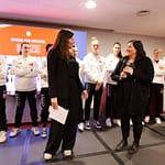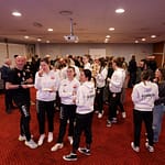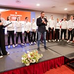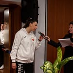 Nella serata presentata da Alessia Bartolomucci, diverse le autorità che si sono succedute sul palco. Tra i presenti, l’assessore cittadino allo Sport Leone Zilio, la presidentessa Fipav Vicenza Ilaria Giatti, il presidente di Palladio Vicenza Volley Franco Scanagatta, i soci Luigi Battistolli, Giorgio Grippa e Paolo Rossi, oltre alle ragazze e allo staff della prima squadra biancorossa allenata da Mariella Cavallaro e Pierantonio Cappellari e impegnata nel rush finale per strappare un pass per i play off di B1 (primi tre posti). La road map di Vicenza vedrà la trasferta veronese di sabato 26 aprile a domicilio della Smapiù Arena Volley, il match casalingo del 3 maggio contro l’Azimut Giorgione e infine il viaggio a Riccione sette giorni dopo.