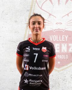 #1 Sanziana Ioana Motroc#3 Beatrice Bacchilega#7 Caterina Sartore#8 Rossella Coradin1. #10 Asia Calza5. #5 Lucia Morra11. #11 Natasha Spinello # Nome #7 Caterina Sartore Nazionalità Italia Posizione Schiacciatrice Height 175cm Squadra corrente VOLKSBANK VICENZA VOLLEY Compleanno Ottobre 26, 2005